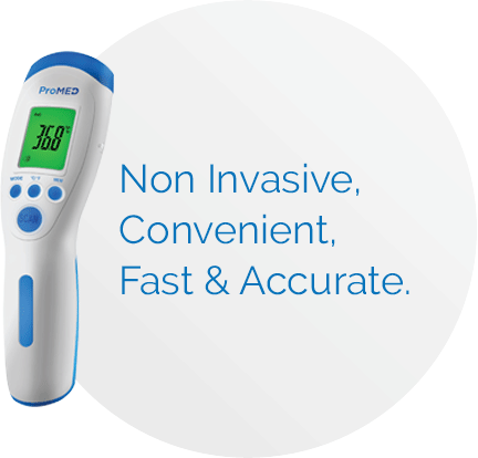 ProMED’s non-contact infrared thermometer allows you to effectively take a person’s temperature even from a distance. Equipped with the latest infrared technology, the ProMED thermometer can be used for both professional and personal purposes to measure temperature accurately without the need for physical contact. Compatible for individuals of all ages, it makes temperature taking an easy affair.